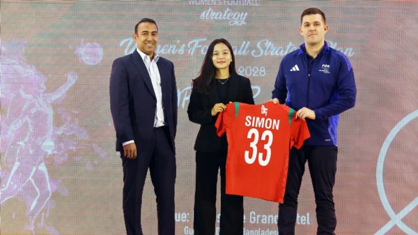 নিজস্ব প্রতিবেদক, ঢাকা ফিফা কর্মকর্তাকে (ডানে) জার্সি তুলে দিয়েছেন ঋতুপর্ণা চাকমা। ছবি: বাফুফে বিশ্বজুড়ে নারী ফুটবলের প্রসারের লক্ষ্যে ‘এমপাওয়ার হার’ নামে এক বিশেষ পরিকল্পনা হাতে নিয়েছে ফিফা। এশিয়ান অঞ্চলে নারী