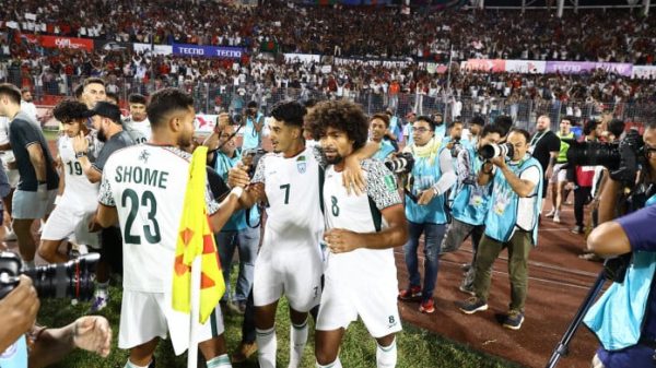 জ্যেষ্ঠ প্রতিবেদক ফিলিপাইনের রেফারি ক্লিকফোর্ডের শেষ বাঁশি। জাতীয় স্টেডিয়ামে দর্শকদের বাধনহারা উল্লাস। ২২ বছর পর ভারতকে হারাল বাংলাদেশ। ঘরের মাঠে প্রায় ২৪ হাজার দর্শকের সামনে হামজাদের ১-০ গোলের জয়। ২০০৩
