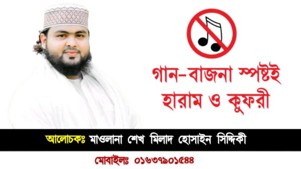 📖এক্টিভিষ্ট লেখক ও গবেষক। ✍️মাওলানা শেখ মিলাদ হোসাইন সিদ্দিকী হাফিজাহুল্লাহ। জিহাদুল ইসলাম জিহাদ স্টাফ রিপোর্টার। ★প্রারম্ভ: বর্তমান যুগে গান-বাজনা অনেকের জীবনের বিনোদনমূলক চাহিদা হয়ে দাঁড়িয়েছে।গান শুনে না এমন মানুষের সংখ্যা