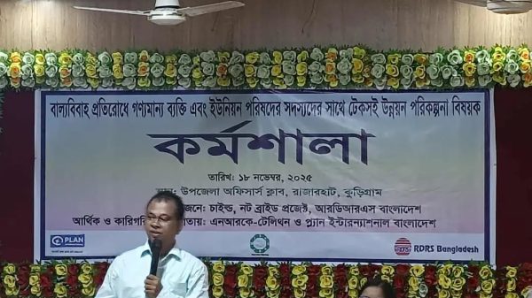মোঃ সোলায়মান গনি স্টাফ রিপোর্টার কুড়িগ্রাম বাল্যবিবাহের অভিশাপ থেকে সমাজকে মুক্ত করার লক্ষ্যে আজ ১৮ নভেম্বর, ২০২২ তারিখে। কুড়িগ্রামের রাজারহাট উপজেলা অফিসার্স ক্লাবে এক গুরুত্বপূর্ণ কর্মশালা অনুষ্ঠিত হয়েছে। “বাল্যবিবাহ প্রতিরোধে