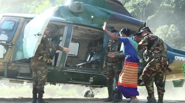 গুরুতর অসুস্থ পাহাড়ি নারীকে হেলিকপ্টারে করে সিএমএইচে নিল সেনাবাহিনী