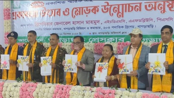 জসীম উদ্দিন জয়নাল,পার্বত্যাঞ্চল প্রতিনিধুঃ ঐতিহ্যবাহী খাগড়াছড়ি প্রেসক্লাবের ৪০ বছর পর্দাপণে প্রকাশিত হলো প্রথম স্মারকগ্রন্থ ‘উজ্জীবন’। বৃহস্পতিবার (১৮ ডিসেম্বর) বিকেল ৩টার দিকে খাগড়াছড়ি অফির্সাস ক্লাবে প্রকাশনাটির মোড়ক উন্মোচন অনুষ্ঠানে উপস্থিত ছিলেন