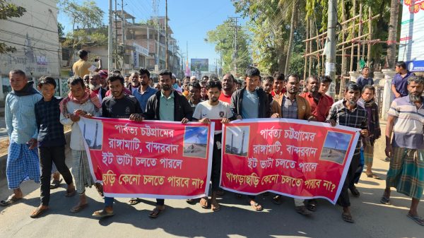 বন্ধ ইটভাটা চালুর দাবিতে খাগড়াছড়ি শ্রমিকদের সড়ক অবরোধ।