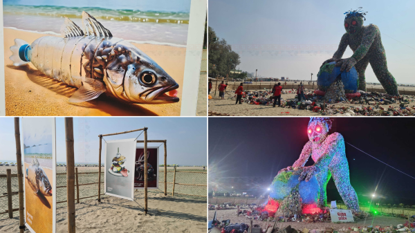 জেলা প্রতিনিধি, কক্সবাজার সমুদ্র দূষণ সম্পর্কে মানুষকে সচেতন করতে কক্সবাজার সমুদ্র সৈকতের সুগন্ধা পয়েন্টে তৈরি করা হয়েছে প্লাস্টিকের দৈত্য। সমুদ্র উপকূল থেকেই সংগ্রহ করা পরিত্যক্ত প্রায় ৬ মেট্রিক টন প্লাস্টিক