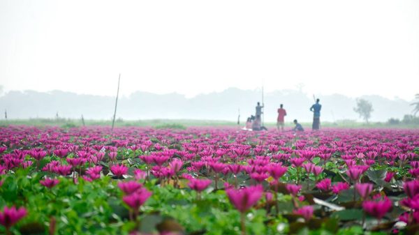 মৌলভীবাজারে হাওর-বিল ও লেকে মুগ্ধতা ছড়াচ্ছে লাল শাপলা