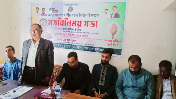 বাগমারায় এনসিপি’র প্রার্থী মীর ফারুক হোসেনের মতবিনিময়