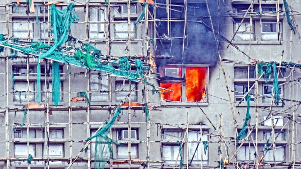 আন্তর্জাতিক ডেস্ক। আগুনে গতকাল সন্ধ্যা পর্যন্ত ৬৫ জনের মৃত্যুর খবর পাওয়া গেছে। হংকংয়ের আবাসিক ভবনের অ্যাপার্টমেন্টে গতকালও আগুন দেখা যায়। আগুন থেকে রক্ষা পাওয়া বাঁশের মাচা দেখা যাচ্ছে। ছবি: এএফপি