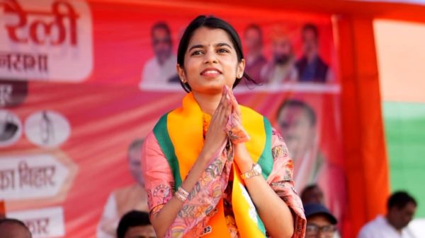 সংবাদ এই সময় ডেস্ক। মৈথিলী ঠাকুর। ছবি: বিহার বিধানসভা নির্বাচনের ভোট গণনা চলছে। এই নির্বাচনে বিজেপির টিকিটে আলিনগর আসনে প্রতিদ্বন্দ্বিতা করছেন মোদিভক্ত জনপ্রিয় লোকসংগীতশিল্পী মৈথিলী ঠাকুর। সর্বশেষ পাওয়া খবরে জানা