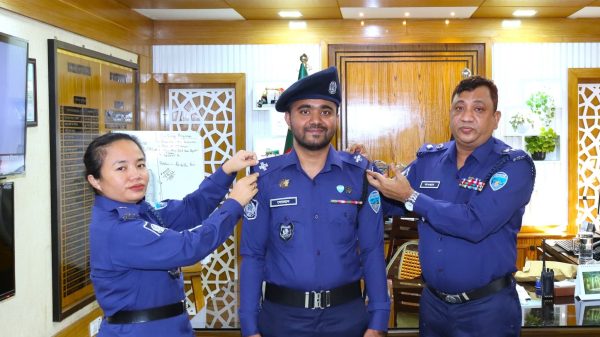 পদোন্নতি প্রাপ্ত পুলিশ সদস্যকে র‍্যাংক ব্যাজ পরিধান