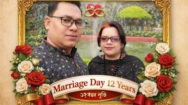 নিজস্ব প্রতিবেদক। ভালোবাসা, শিক্ষা ও মানবিকতার পথে ১২ বছরের অনন্য সহযাত্রা আজ এক অনন্য দিন। শিক্ষকতা, মানবিকতা ও বিশ্বাসের আলোয় আলোকিত এক দম্পতির দাম্পত্য জীবনের ১২ বছর পূর্ণ হলো। তানজিনা