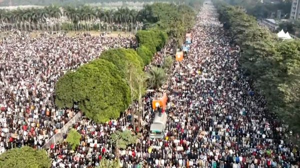 অনলাইন ডেস্ক সংগৃহীত ছবি তিনবারের সাবেক প্রধানমন্ত্রী ও বিএনপির চেয়ারপারসন খালেদা জিয়ার জানাজা উপলক্ষে মানিক মিয়া এভিনিউ ও আশপাশের এলাকায় তিল ধারণের ঠাঁই ছিল না। যত দূর চোখ যায় মানুষ ...বিস্তারিত পড়ুন
