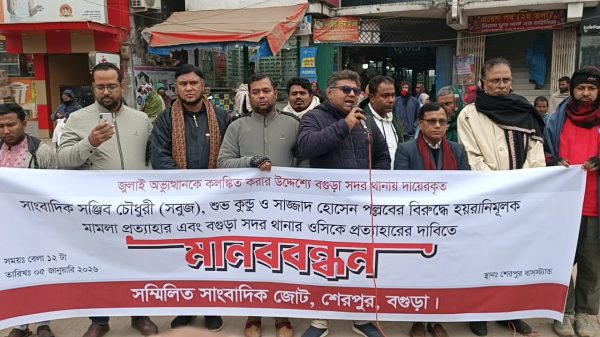 জিহাদুল ইসলাম (জিহাদ) স্টাফ রিপোর্টার বগুড়ার শেরপুরে প্রথম আলোর উপজেলা প্রতিনিধি সহ আরও দুই সাংবাদিককে হত্যাচেষ্টা মামলায় জড়ানোর ঘটনায় ক্ষোভ প্রকাশ করে মানববন্ধন ও প্রতিবাদ সমাবেশ করেছেন স্থানীয় ...বিস্তারিত পড়ুন