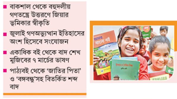 সরদার আনিছ ২০২৬ শিক্ষাবর্ষের নতুন পাঠ্যবইয়ে বড় ধরনের পরিবর্তন-পরিমার্জন করেছে জাতীয় শিক্ষাক্রম ও পাঠ্যপুস্তক বোর্ড (এনসিটিবি)। প্রাথমিক ও মাধ্যমিক স্তরের পাঠ্যবইয়ে মহান মুক্তিযুদ্ধ, স্বাধীনতার ঘোষণা, পরবর্তী রাজনৈতিক শাসনব্যবস্থা এবং সাম্প্রতিক
